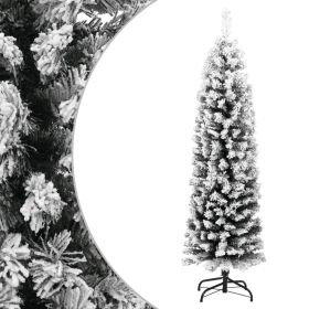 Slim Artificial Christmas Tree with Flocked Snow Green 5 ft PVC