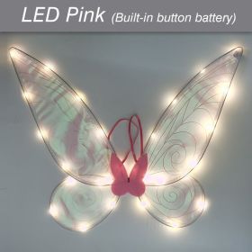 LED Fairy Wings Glowing Sparkle Butterfly Elf Princess Angel Wings Halloween Party Cosplay Costumes Performance Photography Prop (Ships From: China, Color: LED Pink)