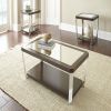 The Truman collection represents function and sophistication. A combination of espresso finish, mirrored tops and canted legs in a stainless-steel finish create this stylish look.