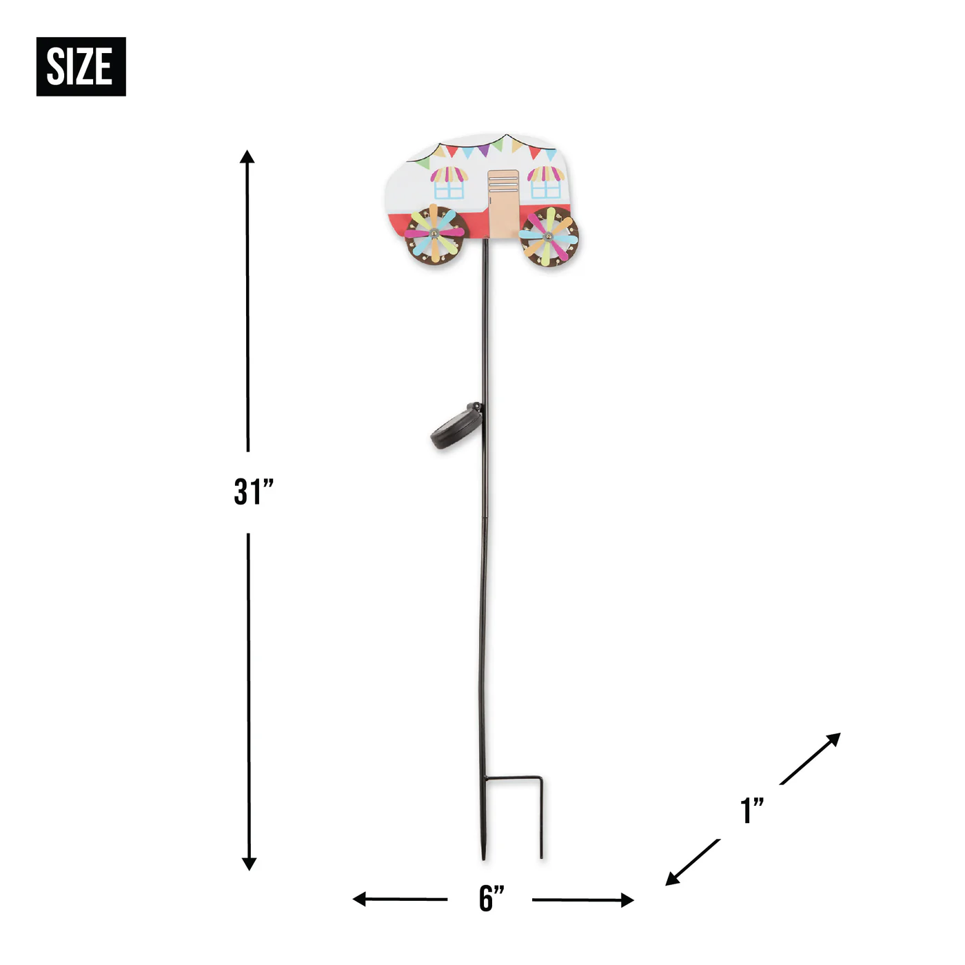 • Solar powered farm truck stake weighs just under 1 lb. and measures 6x1x31 inches.